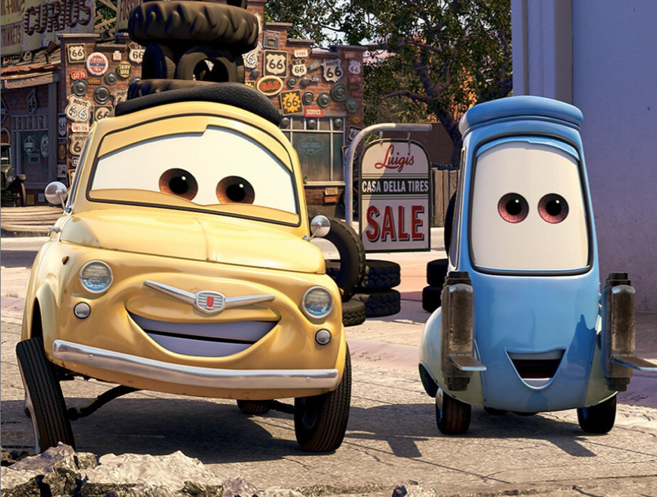 ルイジはイタリアの国民車として親しまれた1959年型フィアット 500をモデルとしており、陽気でおしゃべりなイタリア系移民というキャラクター設定と車種が見事に対応しています。