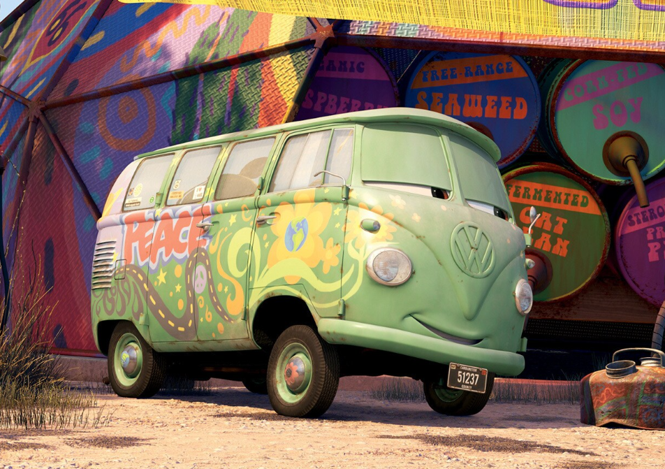 フィルモアは1960年型のフォルクスワーゲン タイプ2バスをモデルとしたキャラクターで、ヒッピー文化を象徴する車種として描かれています。