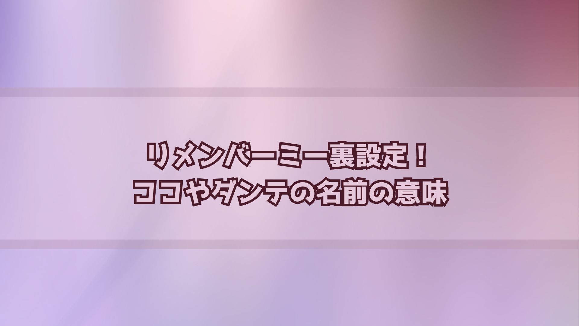 『リメンバー・ミー』には、キャラクターの名前や設定、物語の背景に関する疑問を持つ方が多くいらっしゃいます。